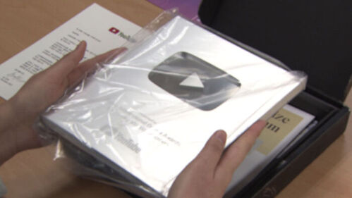 이 실버버튼은 유튜브가 구독자 10만 명을 돌파하는 채널에 수여하는 기념패죠.
