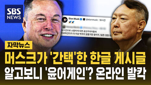 일론 머스크 테슬라 최고경영자가 자신의 엑스 계정에 한국어 게시물을 직접 공유했는데, 이 게시물 작성자가 이른바 '윤 어게인' 지지자인 것으로 알려져 논란입니다.