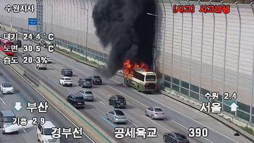 해당 버스는 충남 보은에서 서울로 향하던 중으로, 승객 20여 명은 갓길로 긴급 대피해 다친 사람은 없었습니다.