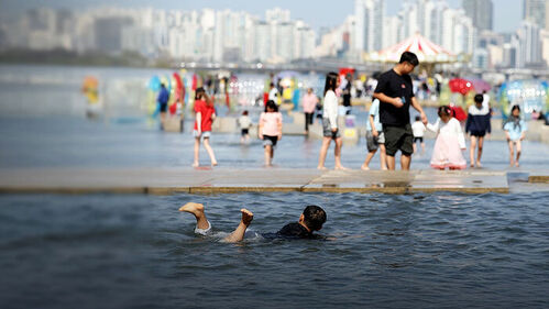 봄기운 가득한 날씨에 도심은 가벼운 옷차림의 시민들로 붐비고, 아이들은 물장구를 치며 더위를 식힙니다.