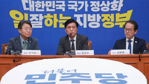 조 사무총장은 '한동훈 전 국민의힘 대표의 부산 북구갑 출마설이 있다'는 질문에 "빈집 털러 다니는 것인지 모르겠는데 무소속이니 여기저기 다닐 것"이라며 "우리가 통제할 수 없는 변수는 중요하지 않고, 전재수 의원(부산 북구갑)의 후임자로 하 수석을 가장 적임자로 판단한다"고 답했습니다.