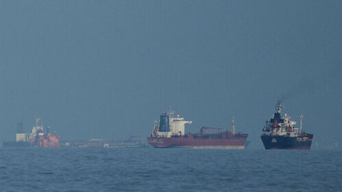 ▲ 호르무즈 해협 근처에서 대기하는 유조선과 화물선