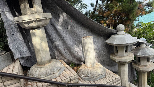 어제(13일) 부산소방본부와 경찰 등에 따르면 이날 오후 3시 10분 부산 기장군 해동용궁사 경내 계단 주변에 설치된 석등 1기의 상부가 갑자기 떨어졌습니다.