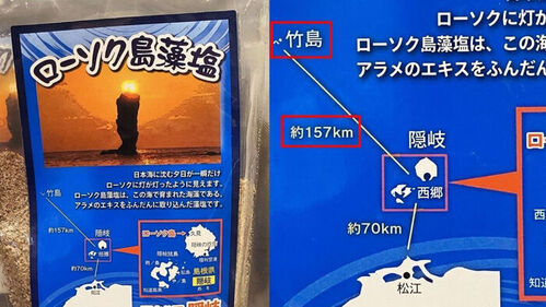 서경덕 성신여대 교수는 오늘(14일) 자신의 SNS를 통해 "한국인 관광객의 제보로 알게 됐다"며 "요나고 공항 내 상점에서 시마네현 생산 소금을 판매하면서 상품 겉면에 독도를 '竹島'로 표기하고, 오키섬과의 거리를 157㎞로 소개하고 있었다"고 밝혔습니다.