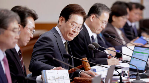 ▲ 이재명 대통령이 14일 청와대에서 국무회의 겸 비상경제점검회의 개회를 선언하고 있다.