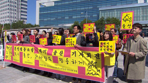 행정기관이 동성 부부의 혼인신고를 반려하는 처분에 불복하는 소송이 울산에서는 처음으로 제기됐습니다. 동성 부부와 인권단체들은 현행 민법에 동성혼을 금지하는 조항이 없는 만큼 혼인신고를 수리하는 것이 원칙이라고 주장하고 있습니다.