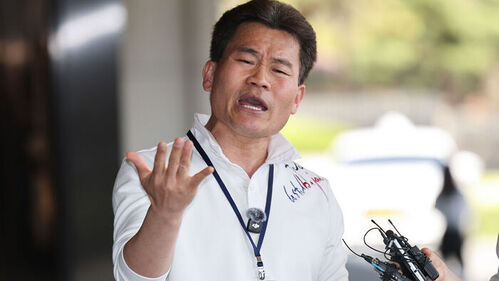 ▲ 전한길 씨가 13일 서울 서초구 서울중앙지방검찰청에서 열린 구속영장 청구 전 피의자 조사에 출석하며 취재진에 입장을 밝히고 있다.