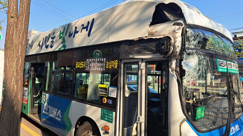 이 사고로 버스에 타고 있던 승객 30여 명 가운데 2명이 유리 파편 등에 맞아 다쳤습니다.