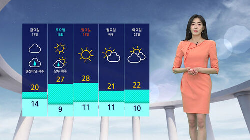 금요일부터 토요일 아침까지 충청과 남부 지방에 비가 오겠고 비가 그치고 주말에는 다시 더워지겠습니다.