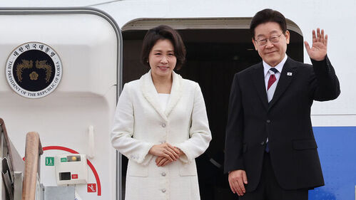 ▲ 출국하는 이재명 대통령 부부