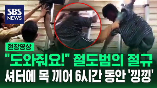[현장영상] "도와주세요!" 도둑질하려다 셔터에 목 끼인 절도범의 절규
