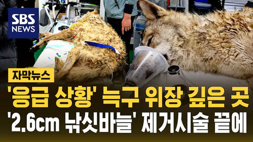 [자막뉴스] '응급 상황' 늑구 위장 깊은 곳 '2.6cm 낚싯바늘' 발견…오전 제거시술 끝 결과는?