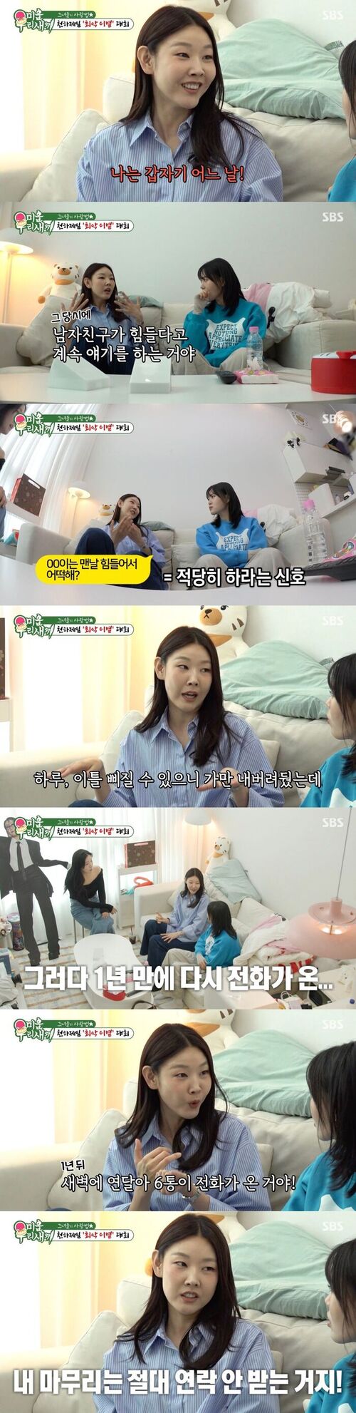 이어 그는 "당시에 남친이 힘들다고 계속 이야기를 했다. 거기에 난 나름의 적당히 하라는 신호를 보냈다. 근데 그 신호를 강력하게 갔는지 그 이후 전화를 안 하더라"라고 당시 상황을 설명했다.