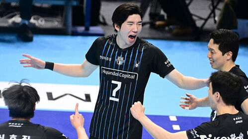 ▲ 지난 1월 4일 인천 계양체육관에서 열린 2025-2026 프로배구 V리그 남자부 대한항공과 현대캐피탈의 경기에서 현대캐피탈 허수봉이 득점 후 환호하고 있다