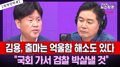 ▷편상욱: <직격인터뷰> 앞서 예보해 드린 대로 김용 전 민주연구원 부원장 모셨습니다. 요즘 정치권에 가장 핫한 분 중의 한 분이죠. 맞죠?
