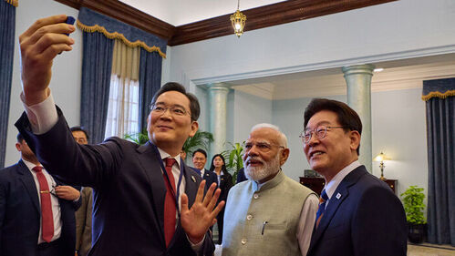 인도를 국빈 방문한 이재명 대통령이 20일(현지시간) 나렌드라 모디 인도 총리, 이재용 삼성전자 회장과 '셀카'를 찍어 눈길을 끌었습니다.