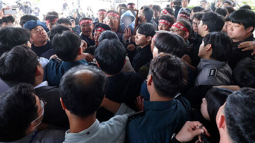 현재 이들은 청사 앞에서 경찰과 대치 중입니다.