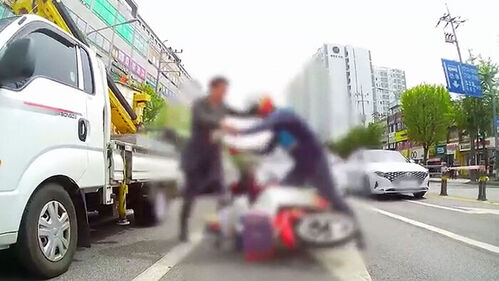 그제(21일) 오후 서울 강서구 우장산역 사거리에서 40대 남성 A 씨가 신호 대기 중이던 우체국 집배원 B 씨에게 다가가 오토바이에서 강제로 끌어내렸습니다.
