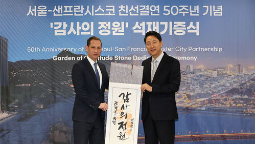 김수덕 서울시 글로벌도시정책관은 "샌프란시스코는 미국을 대표하는 관광도시이자 문화예술의 중심지로서 스포츠 교류로도 서울 시민들에게 친숙한 도시"라며 "결연 50주년을 기념해 샌프란시스코에서 재건과 복구의 상징인 석재를 기증해준 만큼 다양한 교류 협력 사업을 통해 도시 간 우호 관계도 더욱 견고하게 쌓겠다"고 말했습니다.