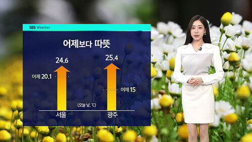 오늘(23일) 서울의 낮 기온이 24도, 광주는 25도를 웃돌며 어제보다 5도에서 10도가량 기온이 높았습니다.