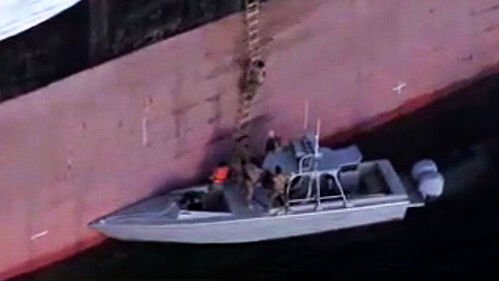 복면을 쓰고 총으로 무장한 이란 군인들이 사다리를 타고 올라가 이 선박을 장악합니다.