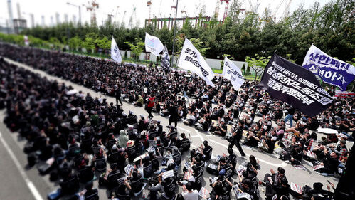 삼성전자 반도체 생산기지인 평택 사업장 8차선 도로를 검정 조끼를 입은 삼성전자 노조원들이 가득 채웠습니다.