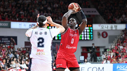 KCC도 추격전에 나선 가운데 정관장은 2쿼터 막바지 오브라이언트를 대신해 투입된 브라이스 워싱턴이 3점 슛으로 43-34를 만들고, 레이업으로 45-35 두 자릿수 격차를 회복하며 전반을 마무리했습니다.