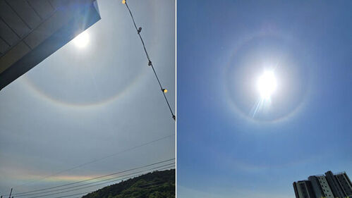 광주지방기상청 관계자는 "기상학적으로 햇무리는 자주 나타나는 현상으로 관측 횟수보다 실제로는 더 많이 발생했을 수 있다"며 "쌍 햇무리라고 해서 이상 기후라거나 특이한 현상은 아니다"고 설명했습니다.