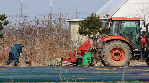 ▲ 강원 강릉시 경포동 들녘에서 한 농민이 농사 준비로 바쁜 모습