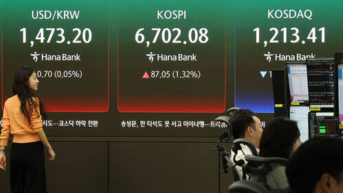 ▲ 코스피가 상승 출발해 장중 최고치를 다시 경신한 28일 서울 하나은행 본점 딜링룸에서 딜러들이 업무를 보고 있다.