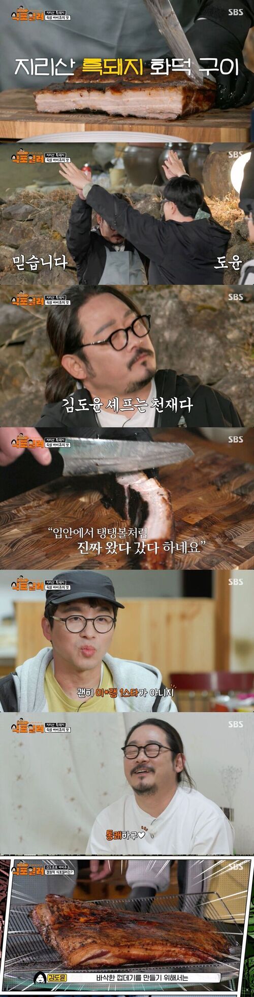 28일 방송된 SBS '식포일러'에서는 김도윤이 지리산 흑돼지 화덕 구이를 선보였다.