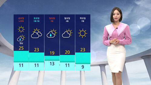 한낮에 서울이 23도, 대전 22도로 어제와 비슷하겠습니다.