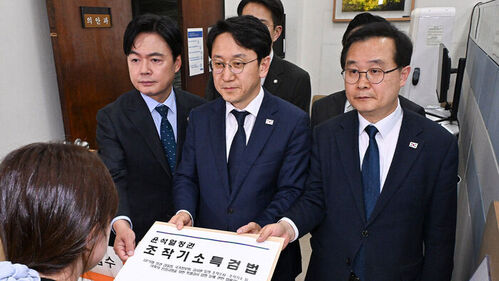 민주당 천준호 원내대표 직무대행과 국정조사 특별위원회 여당 간사인 박성준 의원, 특위 위원인 이건태 의원 등은 이날 '윤석열 정권 검찰청, 국가정보원, 감사원 등의 조작수사·조작기소 등 의혹의 진상규명을 위한 특별검사 임명 등에 관한 법률안'을 국회에 제출했습니다.